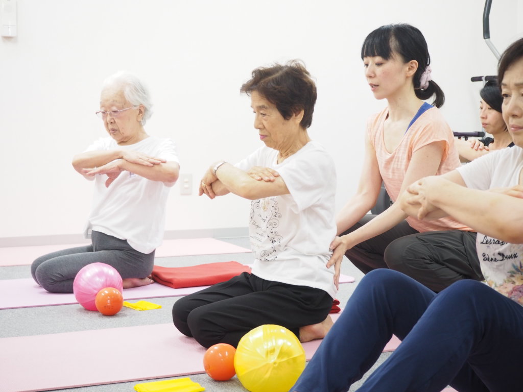 シニアピラティスとの出会いは、10年くらい前から高齢者施設(神戸市北区みねのさと)のボランティアで長年特別講師をさせていただいていたこと。